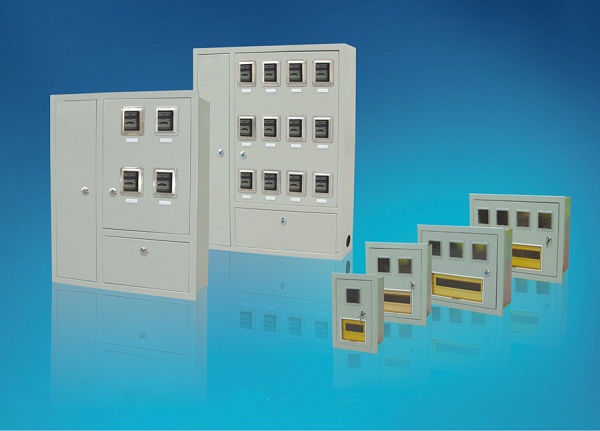 電表為懸掛式和嵌入式的電能表箱,適用于民用和商用住宅中1至多個用戶的電能表計量,表箱為三門結構,總開關裝于左門內,戶表裝于右上門內,出現戶開關裝于右下門內,便于方便。